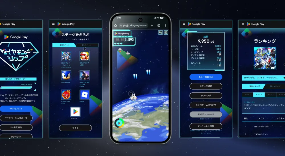 Sep 25, 2025[Google Play Japan] Diamond Ship - Tokyo Game Show 2025A web-based arcade shooter created for Google Play Japan to extend Tokyo Game Show 2025 online with themed worlds, boss battles, leaderboards, and reward-driven play.