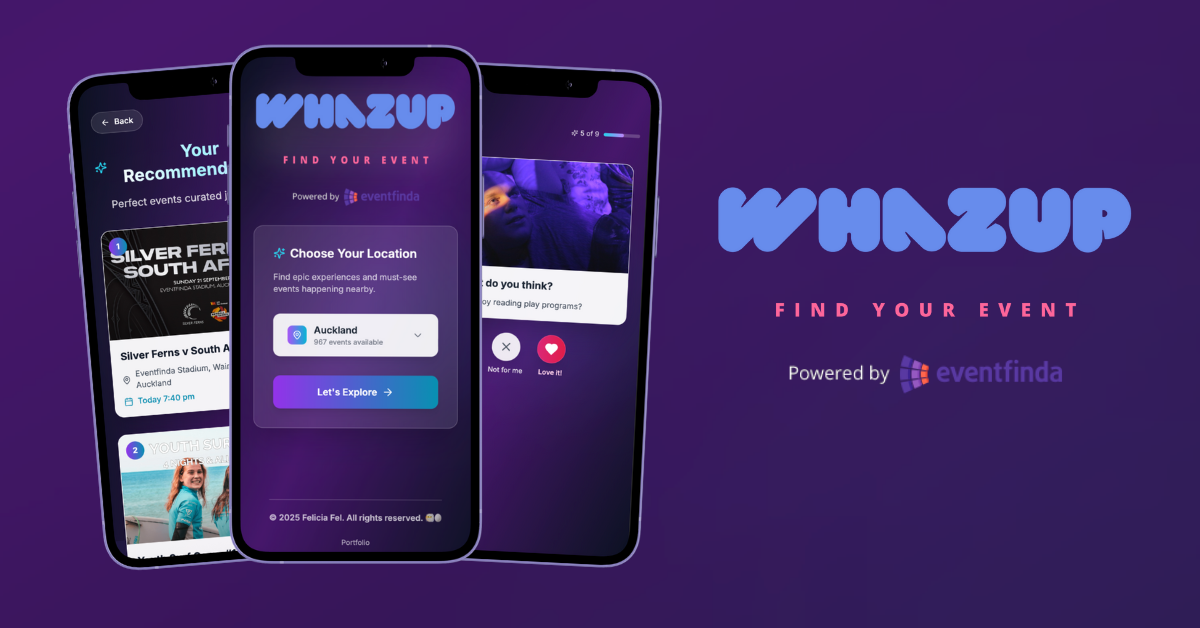 Whazup helps you find events around New Zealand with a quick, fun, swipe-based questionnaire — making event discovery personal and effortless. 🌟 Built to surface concerts, workshops, festivals and more without sifting through long lists.